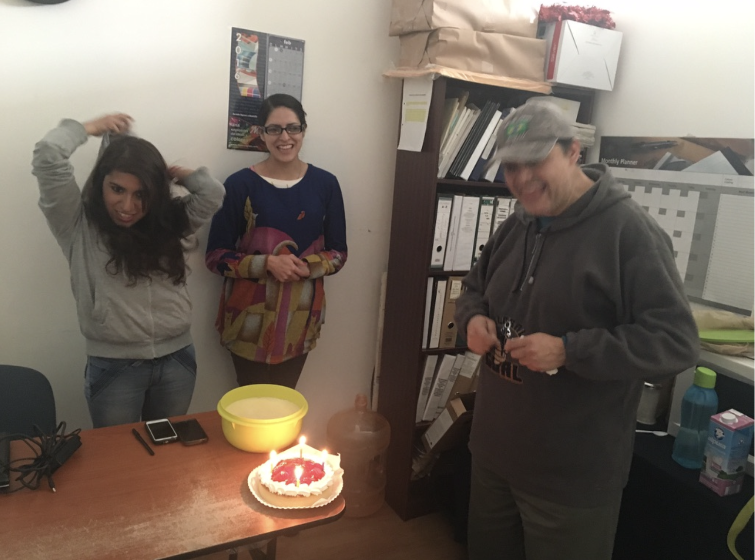 Azucena, Bertha y Eleazar Pablo, en el trabajo operativo y un espacio de festejo.