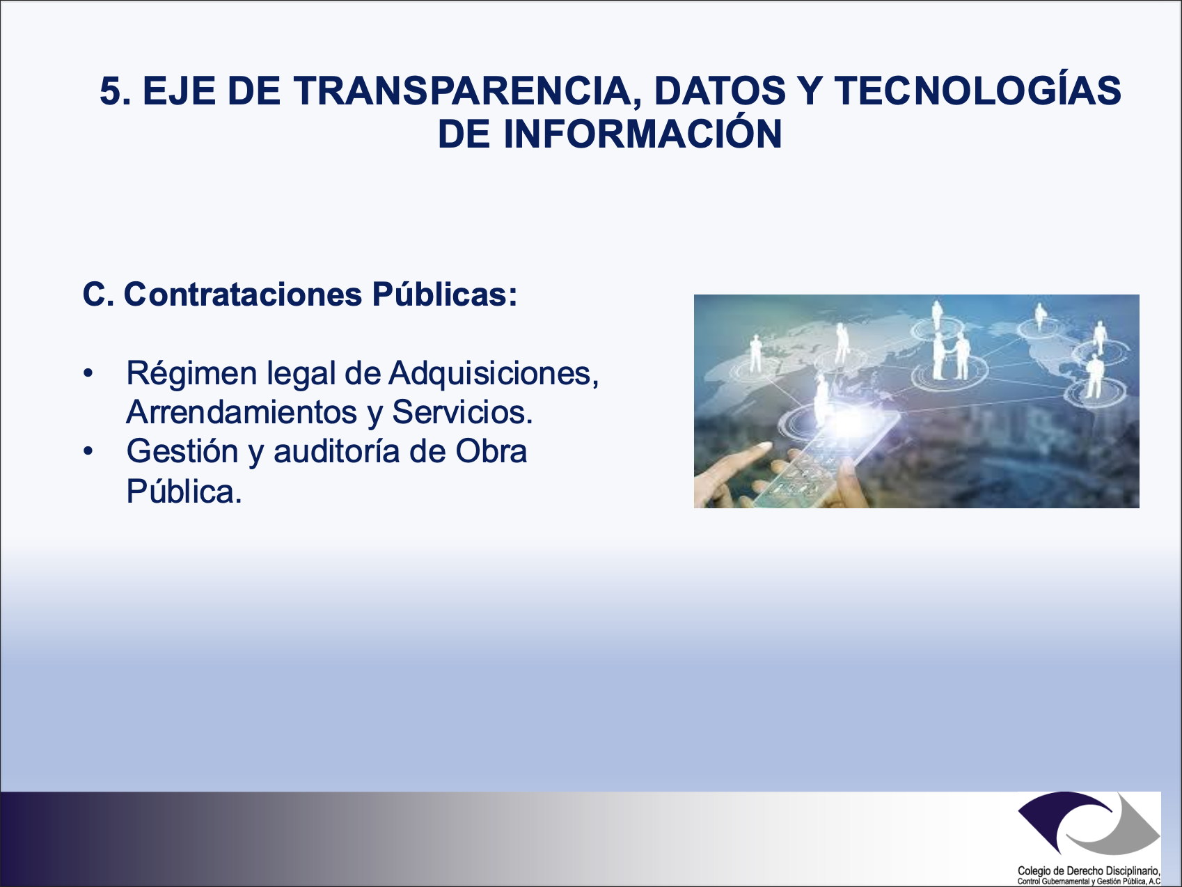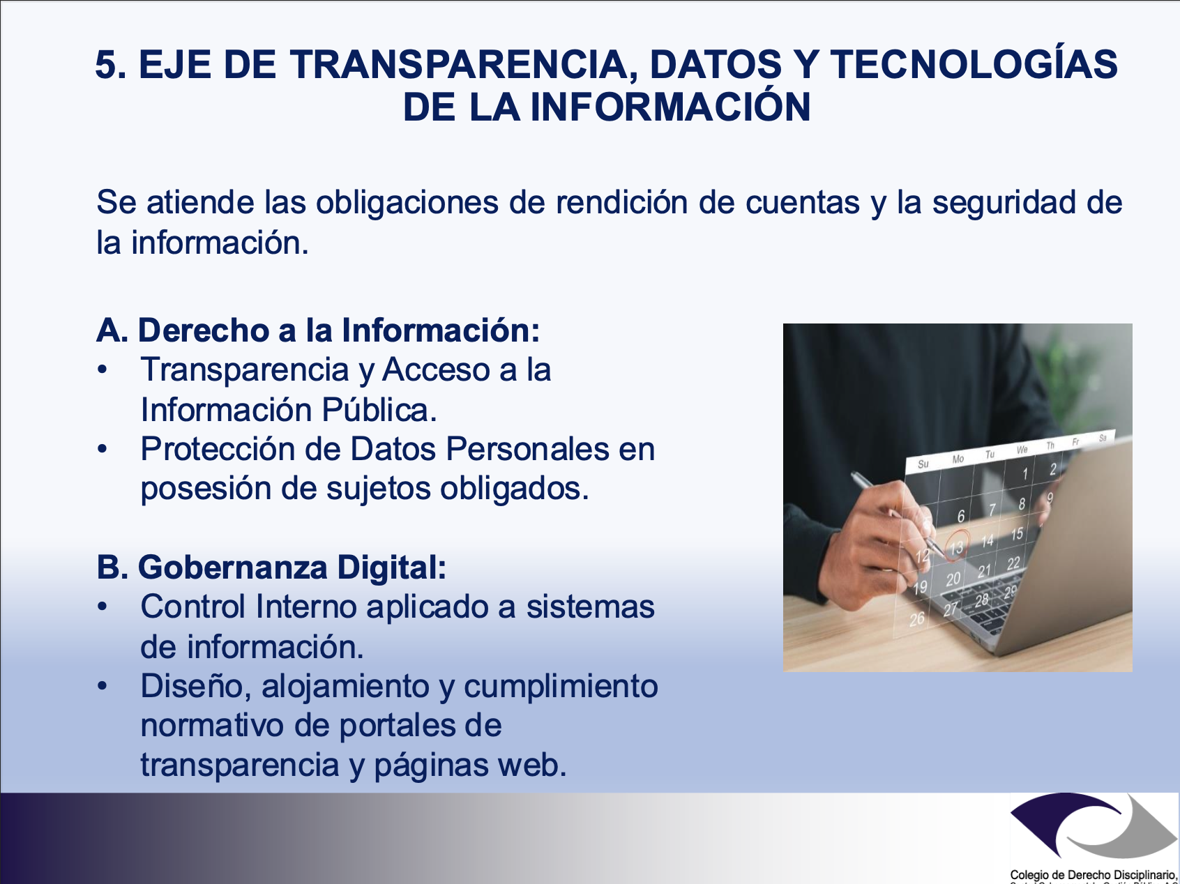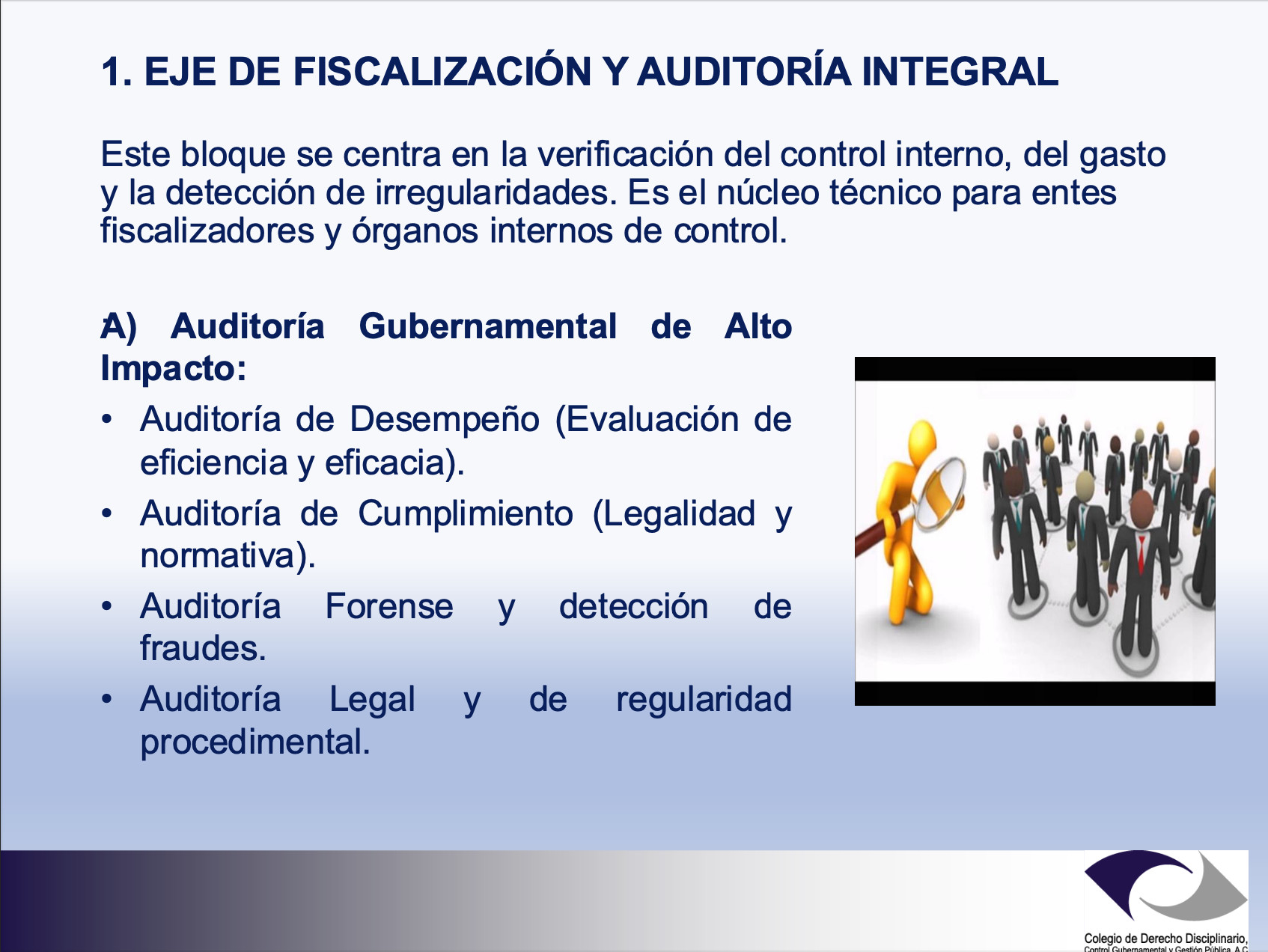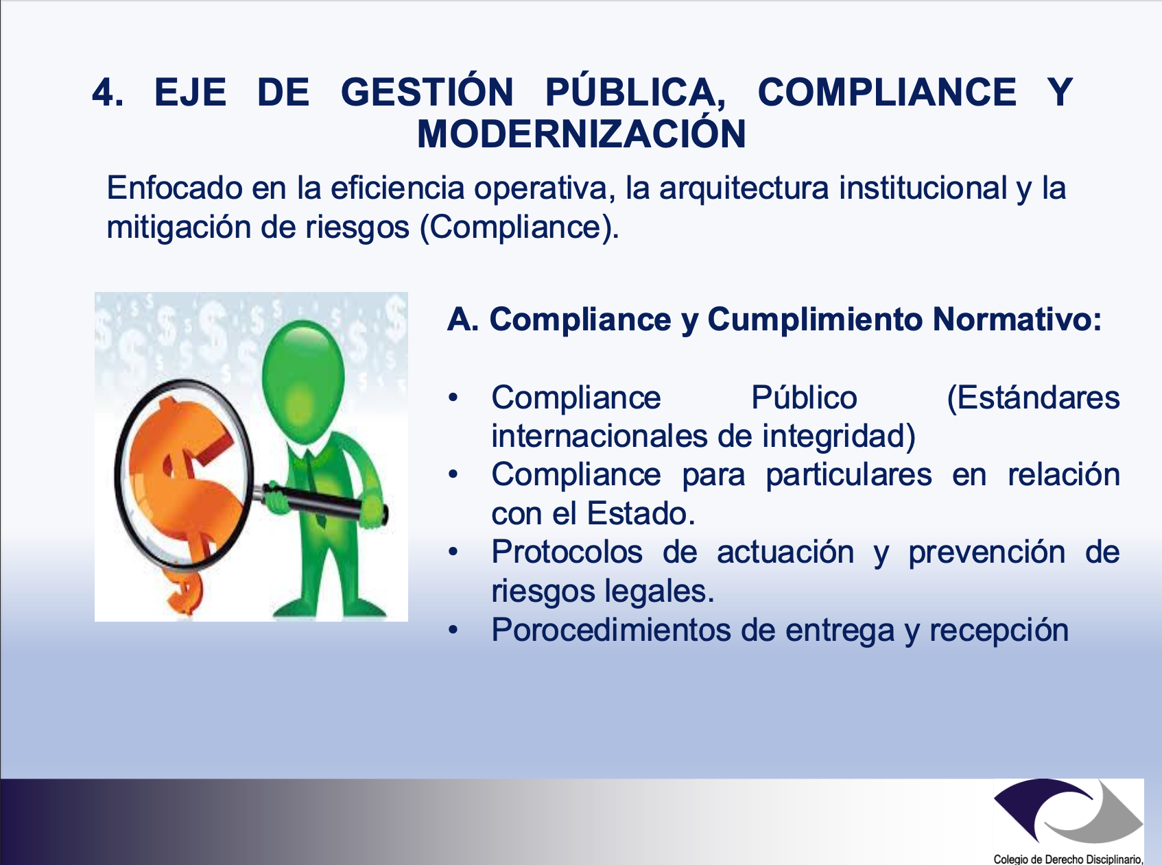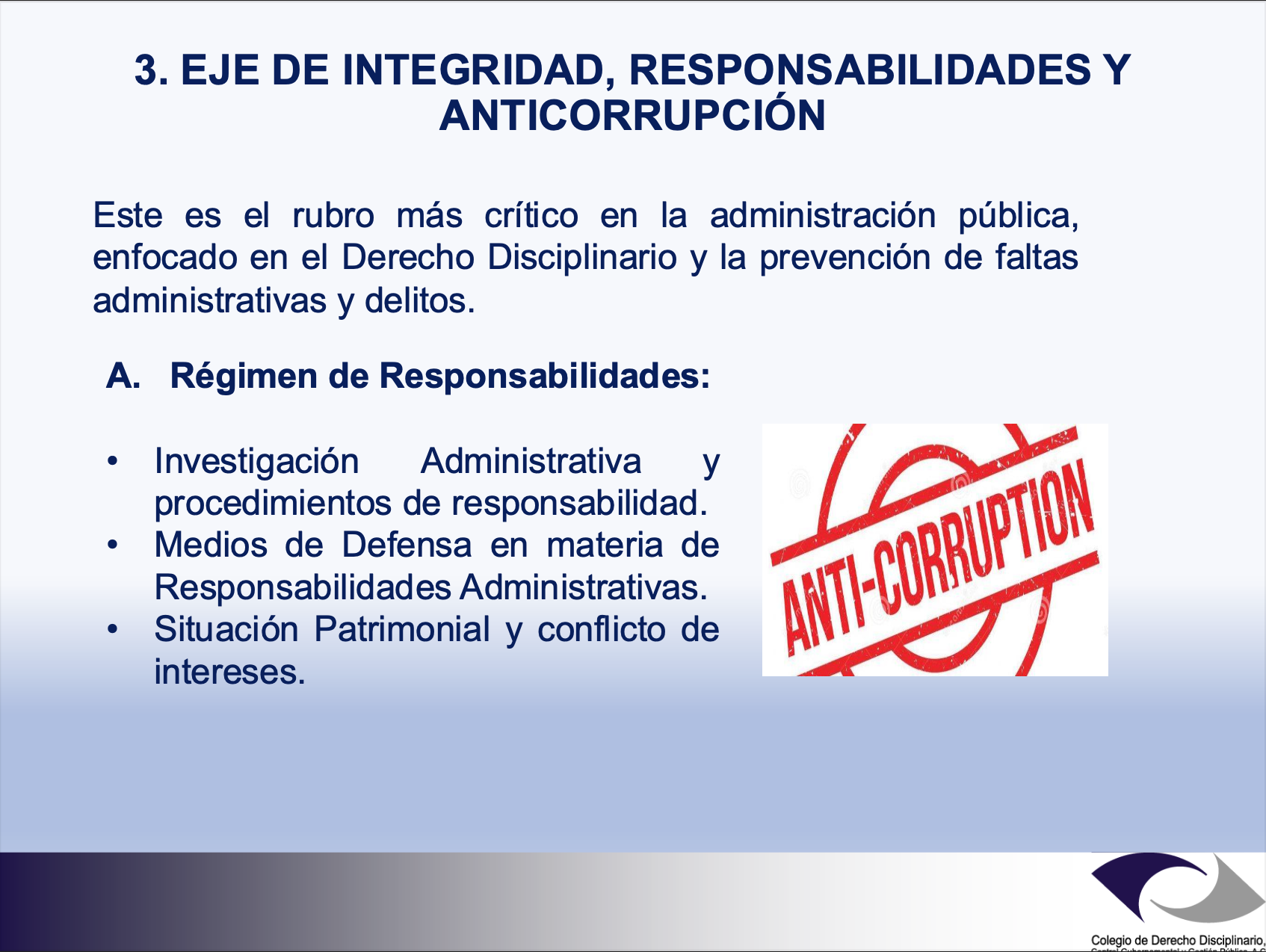 El Colegio de Derecho Disciplinario Control Gubernamental y Gestión Pública, A.C., ofrece los servicios de capacitación y en forma complementaria te ofrecemos asesoría, gestión y litigio en diferentes ramas del Derecho, en sus diferentes áreas, disciplinas y técnicas diversas. Al tocar el link, verás la gama de temas que ofrecemos, y en su caso, poder apoyarte en lo que necesites.
