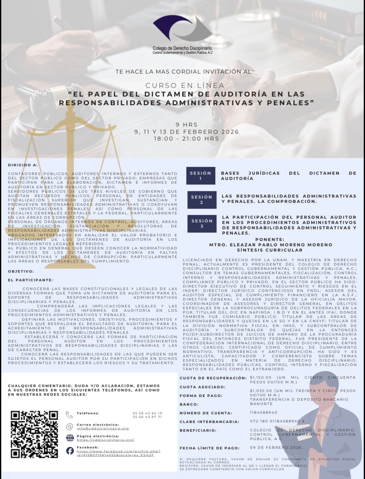 Este link pondrá a tu disposición sus publicaciones, las cuales versarán sobre temas que coincidan y tengan afinidad con las áreas que abarca el Colegio de Derecho Disciplinario Control Gubernamental y Gestión Pública, A.C., en donde analizaremos, estudiaremos, debatiremos, en los temas relevantes en el ámbito internacional y nacional.