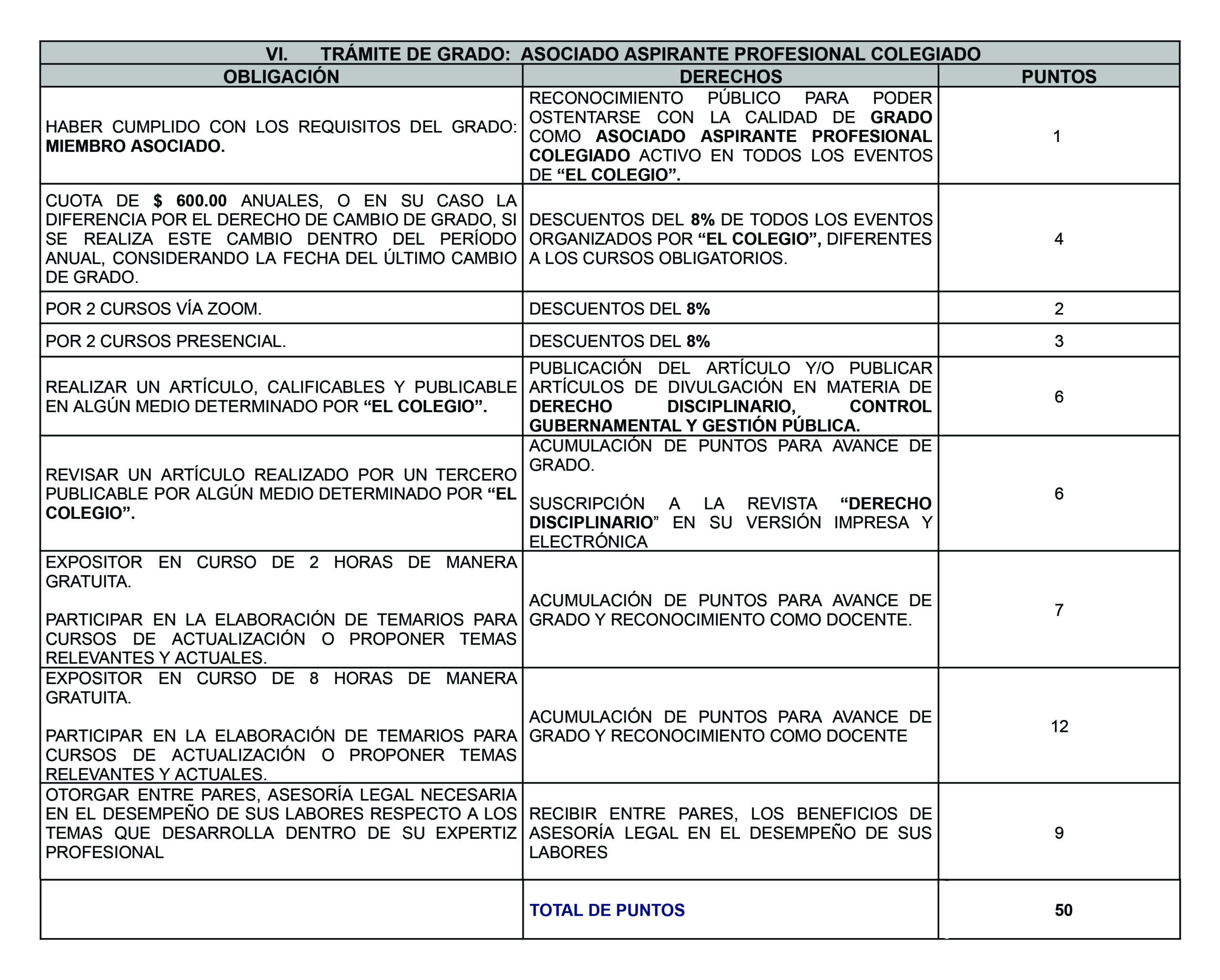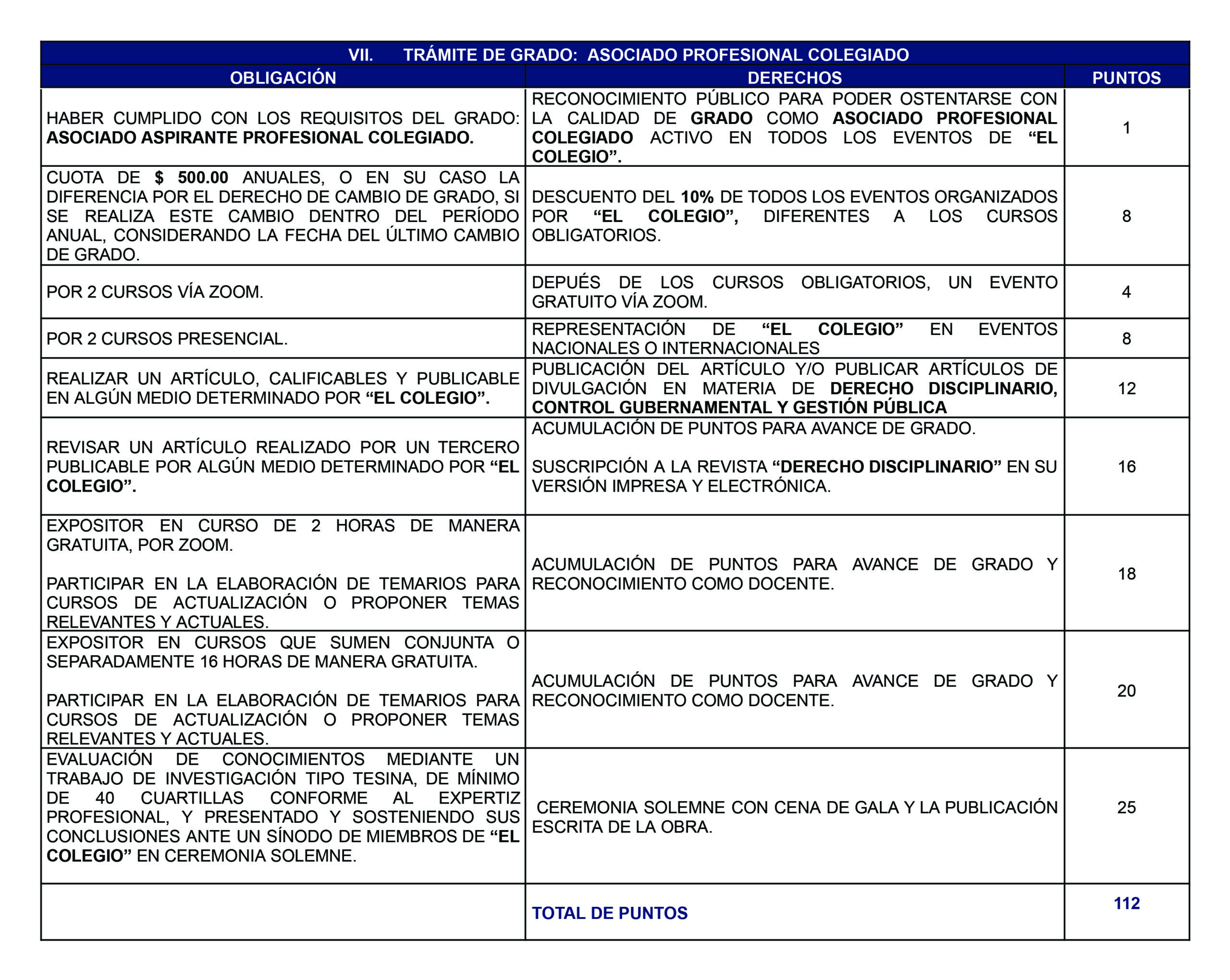 Derivado del intercambio de impresiones y de las aportaciones de todos, se construyó el PROCEDIMIENTO DE DESARROLLO PROFESIONAL PARA LA COLEGIACIÓN, el cual pretende iniciar la construcción de una formación especializada en los conocimientos del Derecho Disciplinario, el Control Gubernamental y la Gestión Pública, con el fin de hacer que quienes participen en este procedimiento, amplíen su ámbito de reconocimiento social y profesional encaminado a una verdadera Colegiación, yendo más allá de los grados académicos.