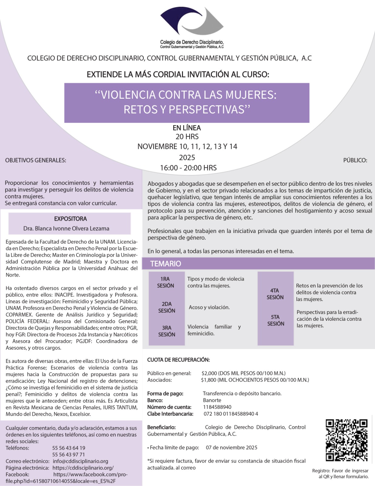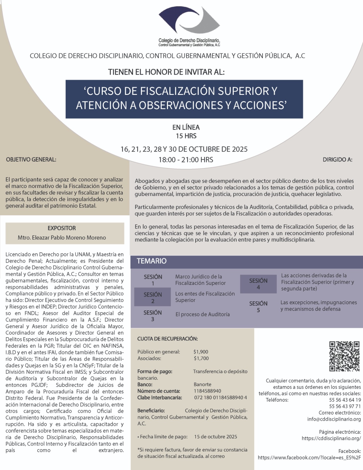 El Instituto Peruano de Derecho Disciplinario, en coordinación con la Asociación Venezolana de Derecho Disciplinario, el Colegio de Derecho Disciplinario Control Gubernamental y Gestión Pública, A.C., y el Colegio Colombiano de Abogados Disciplinaristas, hacen …